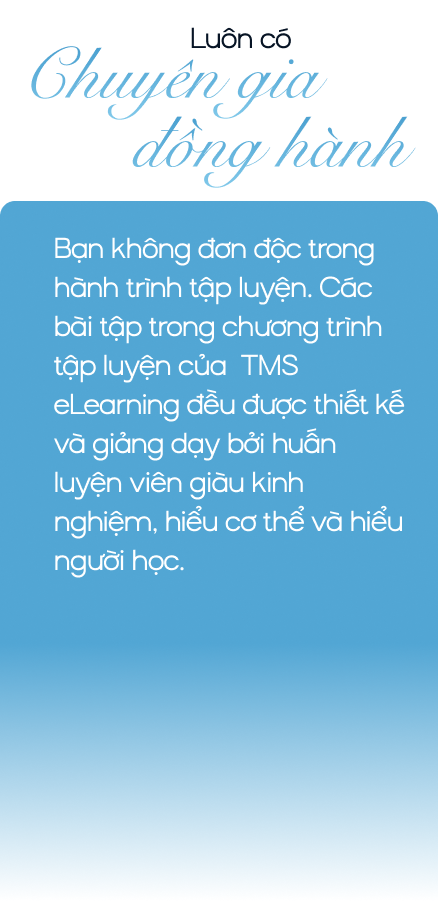 Với TMS eLearning, bạn sẽ được đồng hành cùng huấn luyện viên qua các buổi call định kỳ. Tại đây, bạn sẽ được kiểm tra kỹ thuật, điều chỉnh tư thế, giải đáp thắc mắc và nhận những lời khuyên cho tình hình sức khỏe của bản thân.